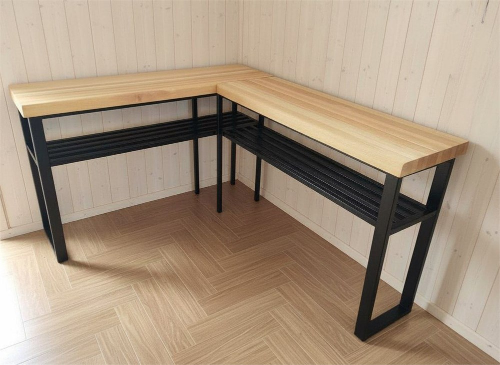 Современная угловая обувница в стиле лофт — идеальный выбор для тех, кто ценит функциональность, натуральные материалы и индустриальный дизайн. Изготовлена из прочного металла и экологичного мебельного щита лиственницы, что обеспечивает долговечность, устойчивость к износу и эстетичный внешний вид.