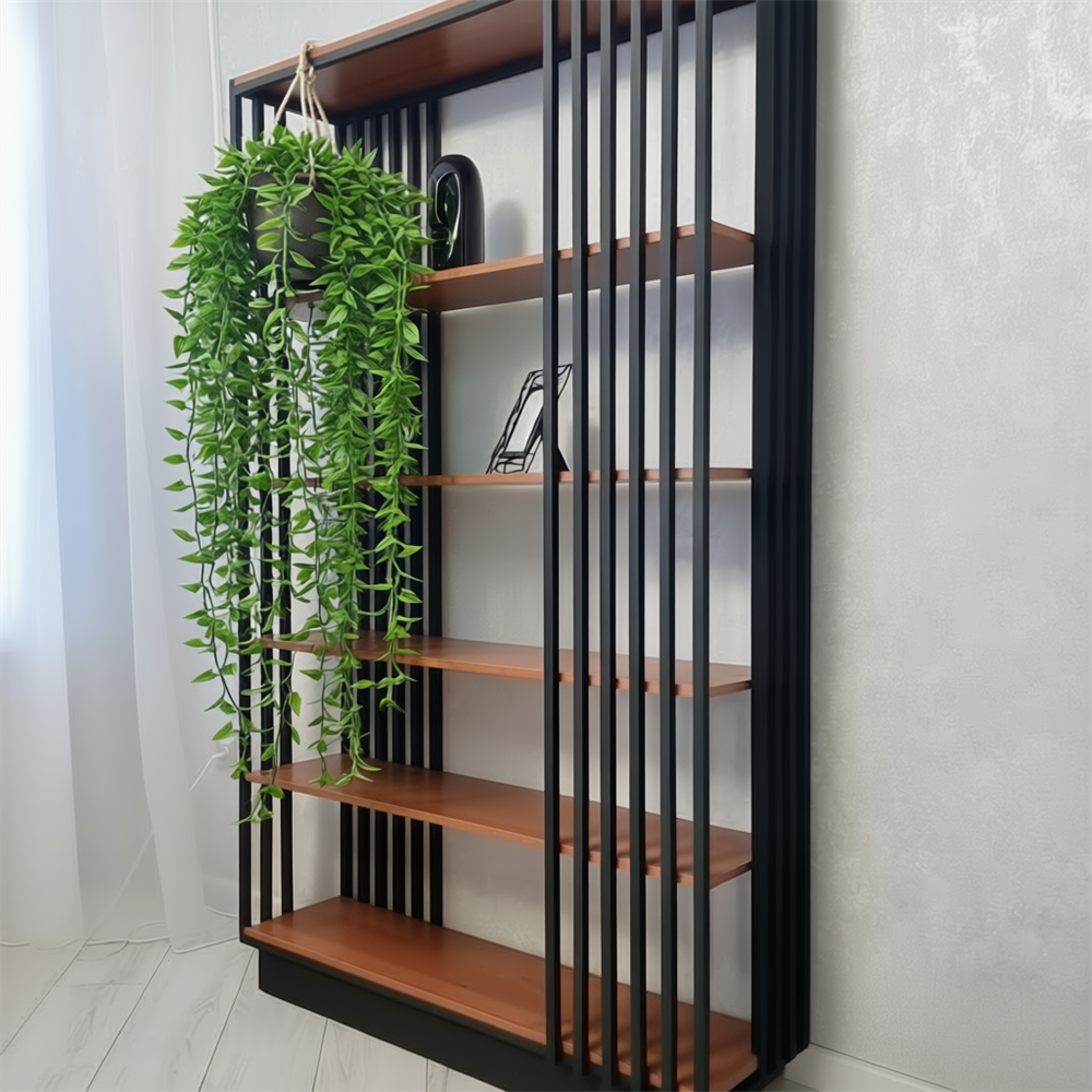 Модель отлично впишется в гостиную, кабинет или даже просторную прихожую вашего дома, добавляя пространству индустриальный шарм и уют. Мы изготавливаем каждый стеллаж на заказ с вниманием к деталям и качеству сборки.